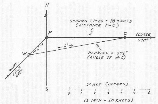 - Ground Speed. The length of the Course line from P to C indicates your ground speed in this wind. In the example, the length of the line from P to C is just under 4½ inches. With a scale of 20 knots per inch, this indicates the ground speed on this leg is about 88 knots.