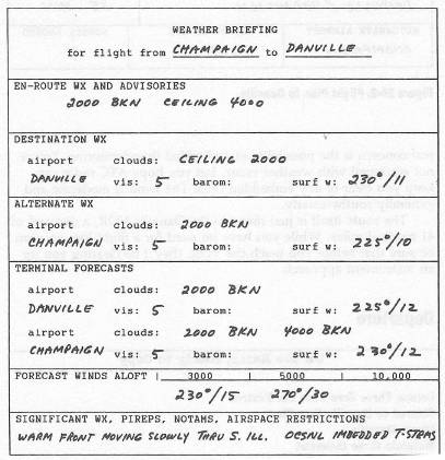 The route itself is just direct to the Danville VOR, a distance of 41 nautical miles. While you have no need for a flight log, you can be sure that before you reach the VOR, they'll be clearing you for an instrument approach.